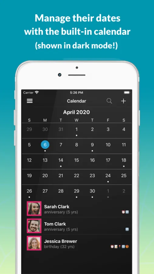 - manage dates using the built-in calendar and sync them to your Apple calendar