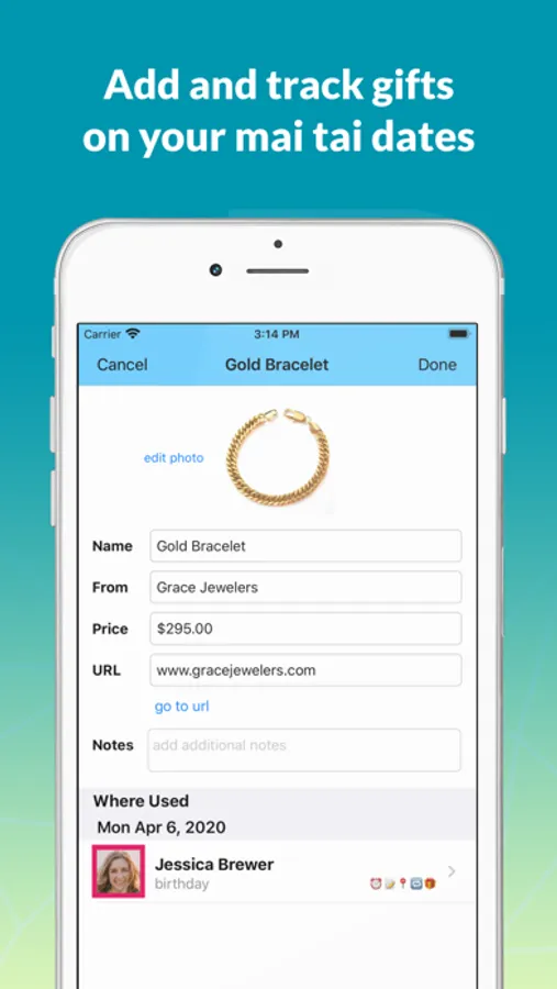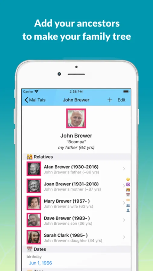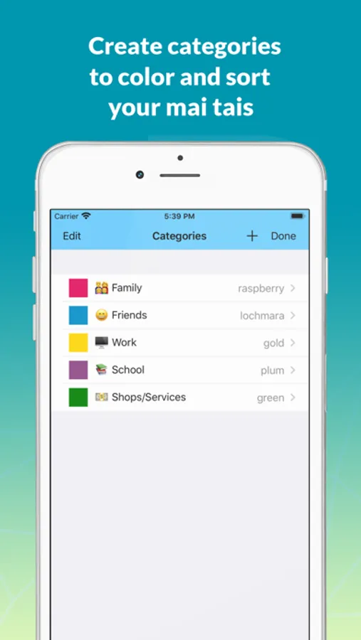 Import some or all your contacts into Mai Tais, or just create your own. A mai tai can be anything: a person, a business, a pet, a holiday, a car, a website, any object. Whatever you want to add. Just give it a name, an image, a category, a relationship, and off you go. Have fun with it!