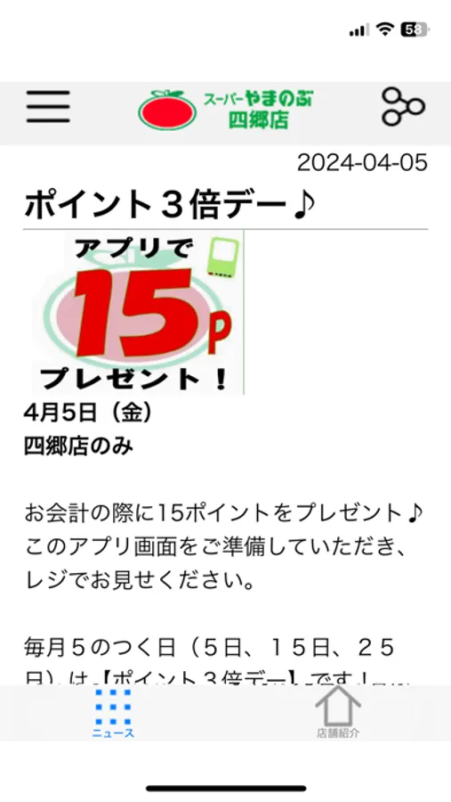 ・「News」 やまのぶ四郷店の情報がNEWSで配信されます。