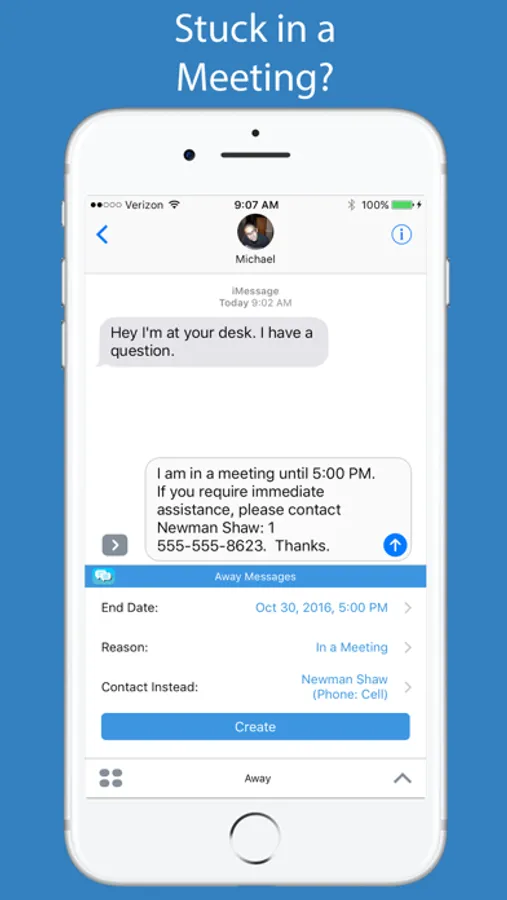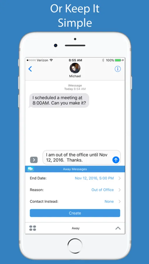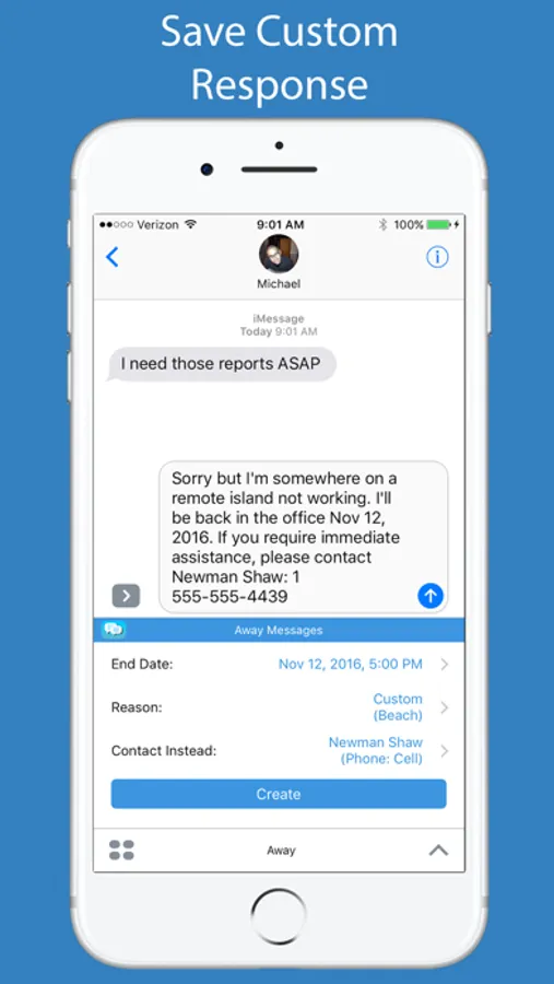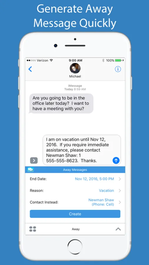 This app on the other hand does the next best thing and makes generating an away message super easy and efficient saving you time, when you need it most, during your time off!****