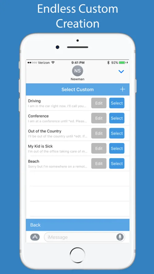 All your previous settings will be saved, so next time you went to send a message, you just open Away Messages and tap the create button and you are done!
