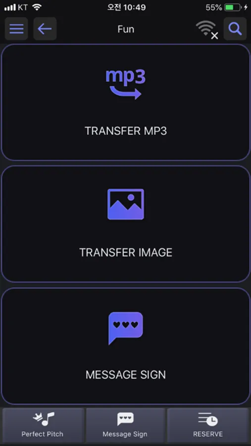Under the FUN feature of the TJ Smart Song List is a bunch of enjoyable experiences such as the Message Sign that allows you to display notes and messages you want to post on-screen; the Transfer Image that allows you to flash your own photos on-screen as background display; the Transfer MP3 that allows you to play music saved on your phone to the loudspeakers through the Karaoke machine; the Perfect Pitch – a feature that allows you to sing a song like a game where you must hit the right note guides displayed on-screen to get a high score; and the Roleta feature (found on the Remote Control button) which allows you to play spin-the-roulette games where you can customize the rules/instructions to be selected.