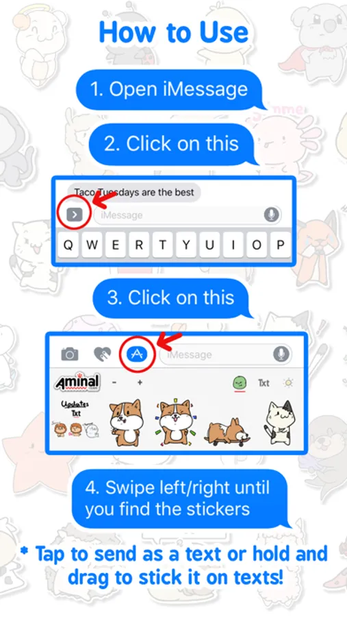 Stick these cute stickers on your iMessages to add a bit more character to your texts or to bother someone who hates stickers/animals!