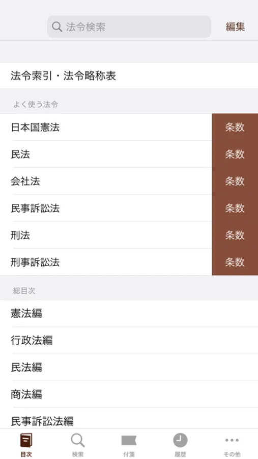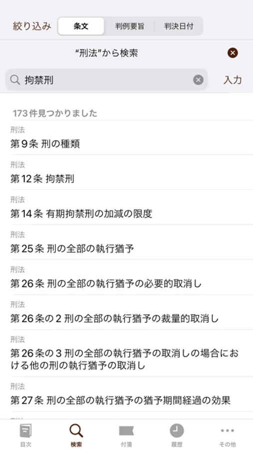 ○ 法令検索(目次画面最上部の検索フィールドで素早く目的の条文を表示)