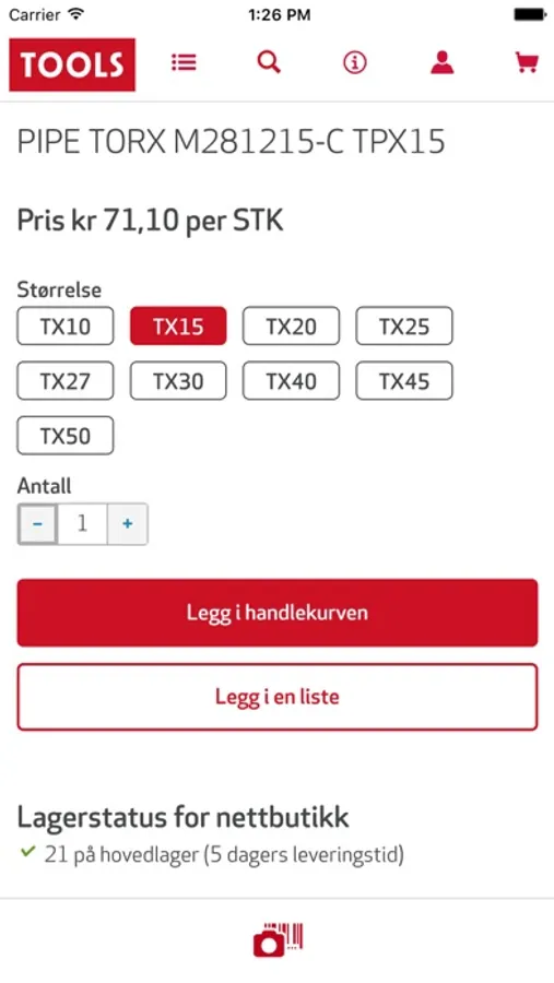 TOOLS E-handels-app ger dig möjligheten att använda vår E-handel på ett smidigt vis i din telefon.