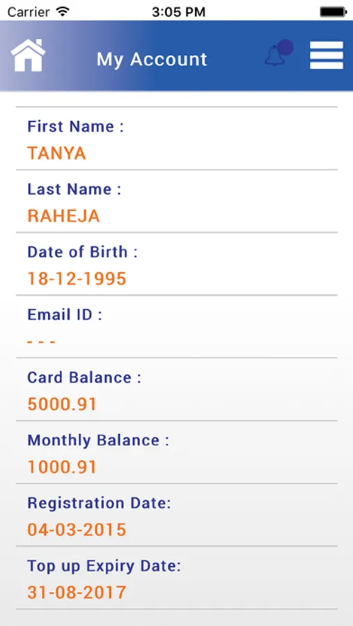 • All other user related information (Customer Name, Date of Birth, Email ID)