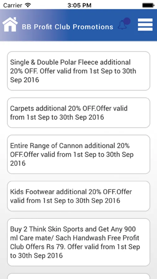 As a Big Bazaar Profit Club card holder customers gain access to exclusively created promotions and offers only for Big Bazaar Profit Club members. The application will periodically be updated with offers that can be viewed within the application.