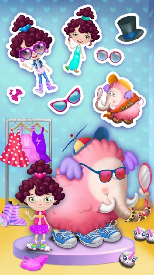MUFFINS' DRESS UP: Muffins wants to look cool and cute just like Mia! Create the most fun mammoth outfit and press the camera button to save Muffins’ new style. It will appear on the game map!