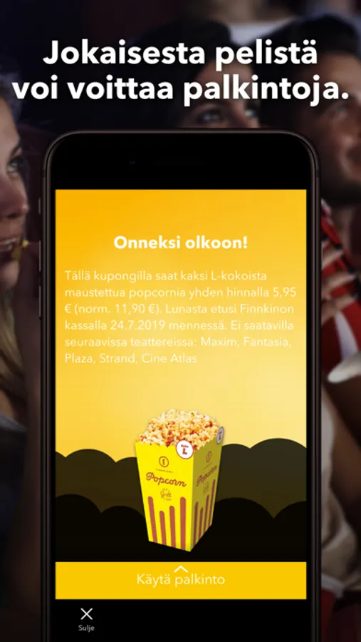 Leffapeli on Finnkinon elokuvateattereissa ennen elokuvaa pelattava interaktiivinen peli, jossa käytät älypuhelintasi peliohjaimena ja pelaat valkokankailla näkyvää vaihtelevaa peliä. Voit voittaa mahtavia palkintoja. Pidä siis matkapuhelimesi valmiina ja pelaa Leffapeliä!