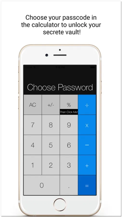 PERCENTAGE TO UNLOCK [%] : Need to Press Equal button after entering correct password into the calculator to open Calculator Vault app.