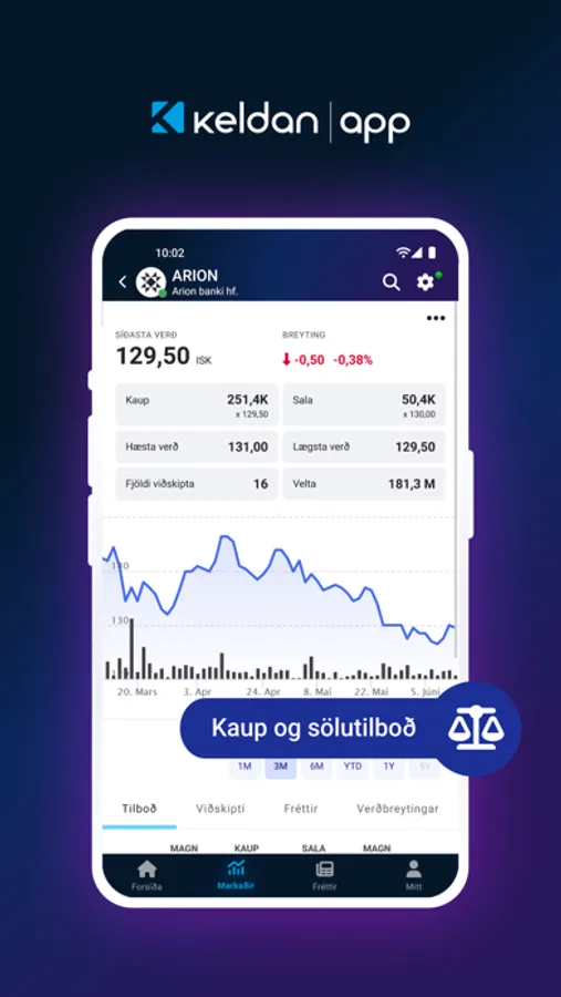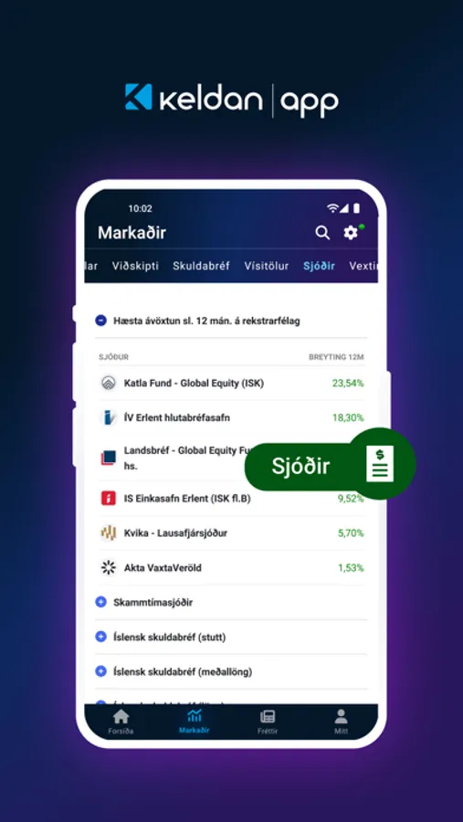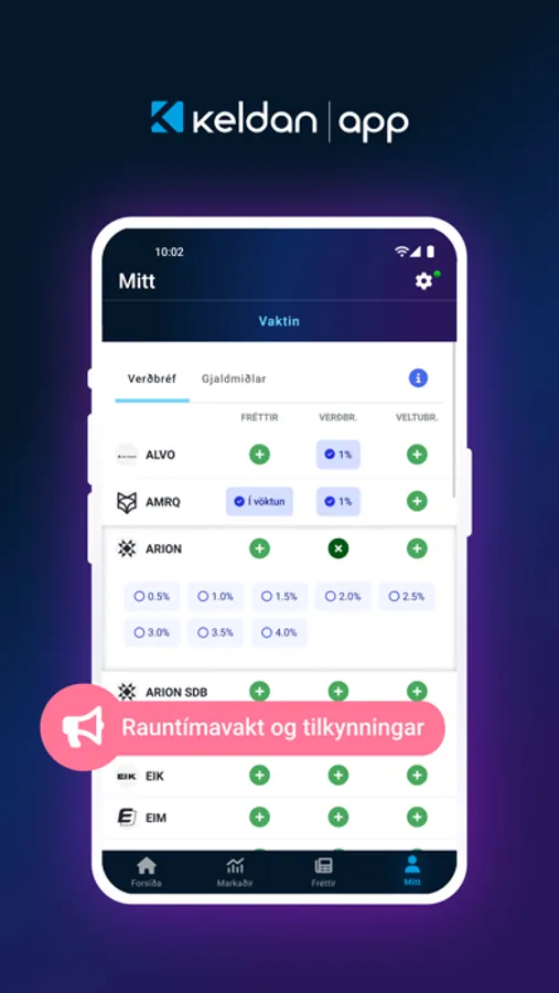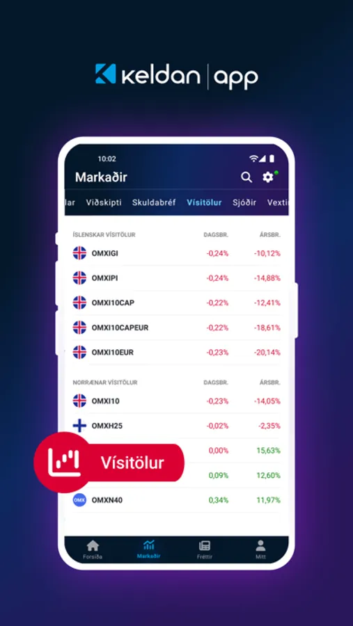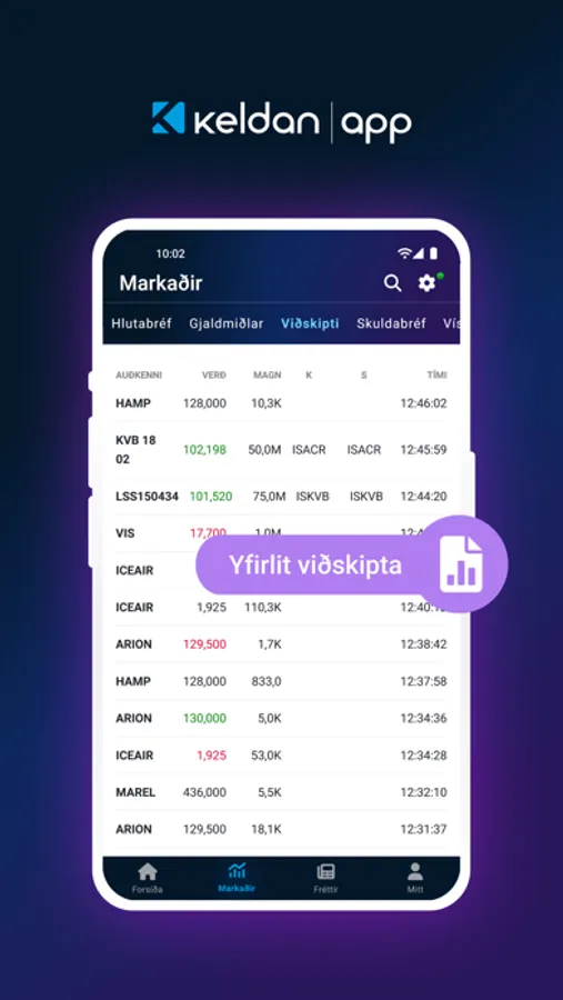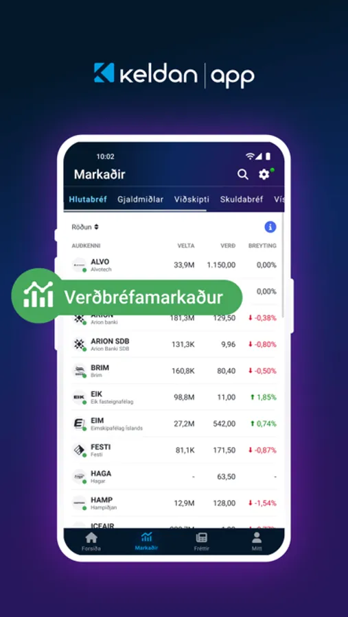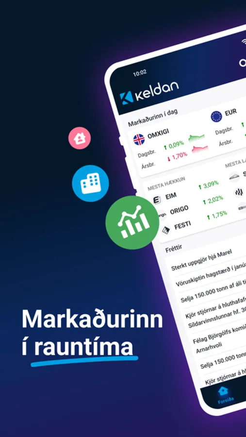 Allar viðskipafréttir á einum stað. Með Keldu appinu færðu gott yfirlit yfir gengi hlutabréfa, skuldabréfa, sjóða og gjaldmiðla.