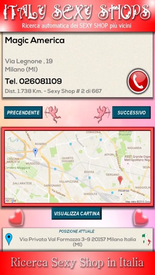 Italy Sexy Shops è l'app che fa per te. Ti basta avviare l'applicazione per visualizzare immediatamente il Sexy Shop più vicino a te. Puoi scorrere tutto l'elenco ordinato per distanza e telefonare al negozio che preferisci direttamente dall'app.