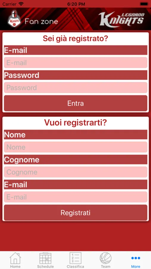 Potrete rimanere connessi con i nostri social e fare il tifo insieme a noi con i giochi della FanZone.