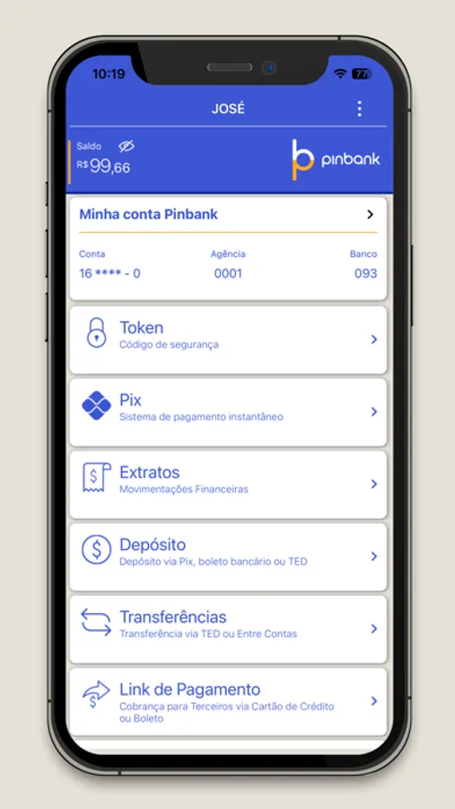 Nele você controla todo o seu financeiro, realiza transações bancárias, pagamentos, transferências, confere seu saldo, recarrega seu celular e muitas outras perações em um só click.