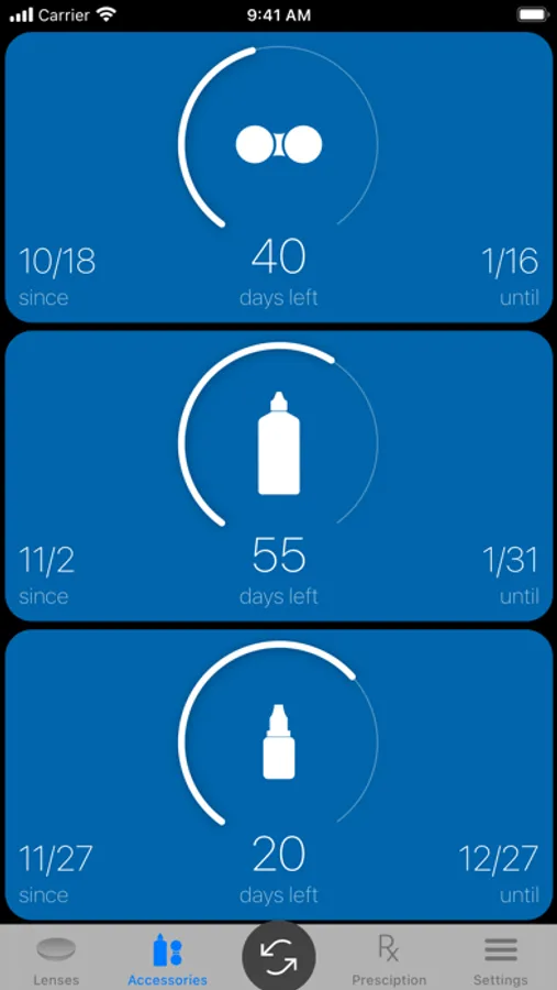 • Accessory tracking: Keep tabs on essential accessories like solution, case, and eye drops, ensuring they are timely replaced as well.