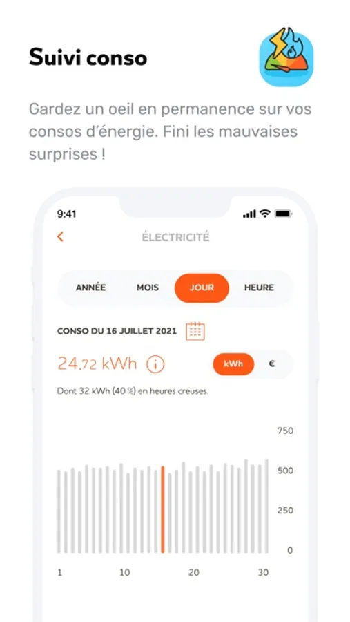 - suivez vos consos d'énergie au jour, au mois, à l’année