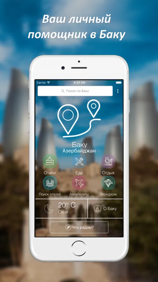 Это приложение станет вашим личным помощником в Баку! Установите его бесплатно прямо сейчас и смотрите всю необходимую информацию по отелям, ресторанам и кафе, заказывайте экскурсии по Баку, ищите авиабилеты!
