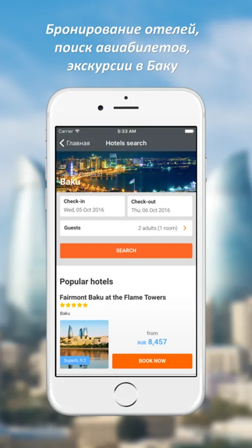 Найти и забронировать отель, найти авиаперелёт или экскурсию в Баку - с приложением Гид по Баку это очень просто!