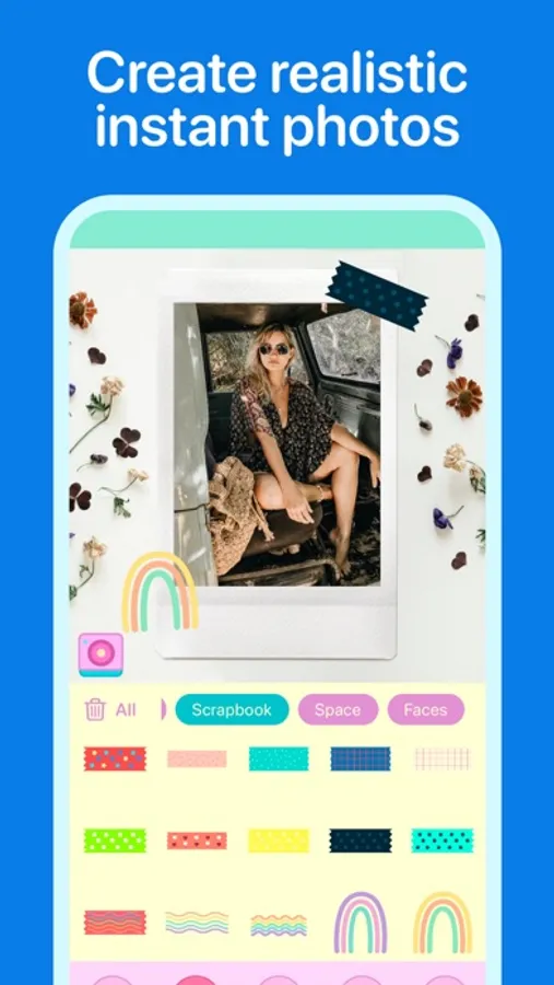Instants is a simple tool for creating realistic instant photo effects. With our app, you can easily create mockups of instant photos, add text and stickers, design greeting cards and posters, and enhance your photos with filters and effects.