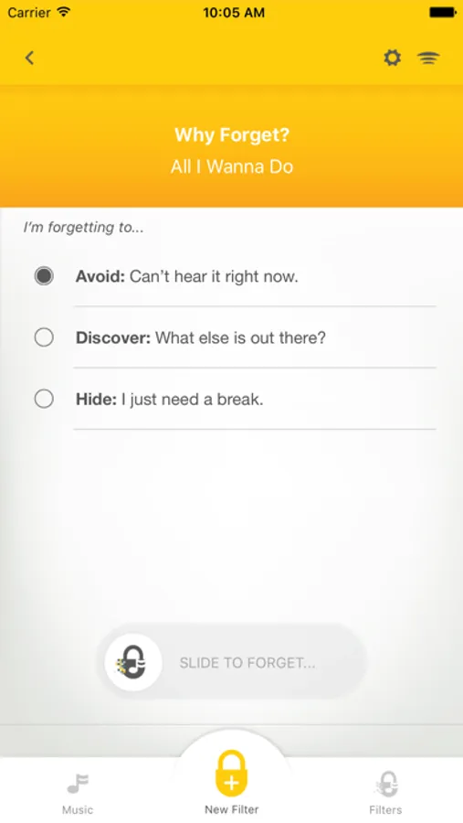 - Create filters to forget by Song, Artist or Album