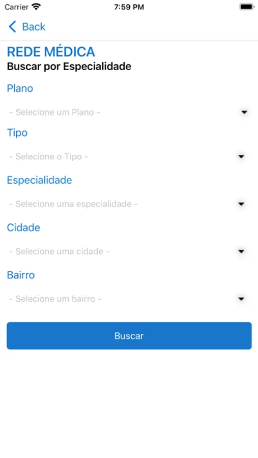 - Buscas por médicos e prestadores da Rede de Atendimento com localização exata e mapa;