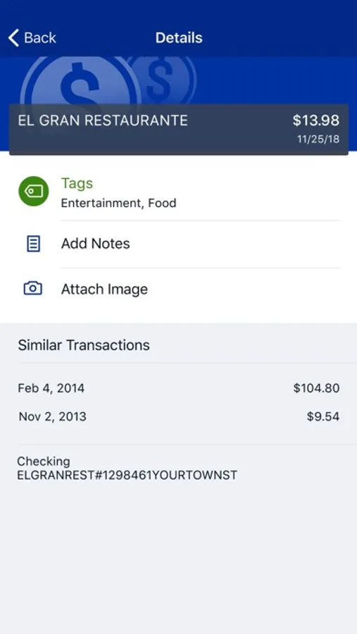 Add Tags, Notes, Images & Geo-Information: By enhancing transactions with custom tags, notes or photos of a receipt or check, you have the ability to stay organized and find exactly what you’re looking for when searching through your finances.