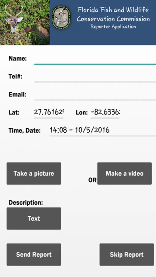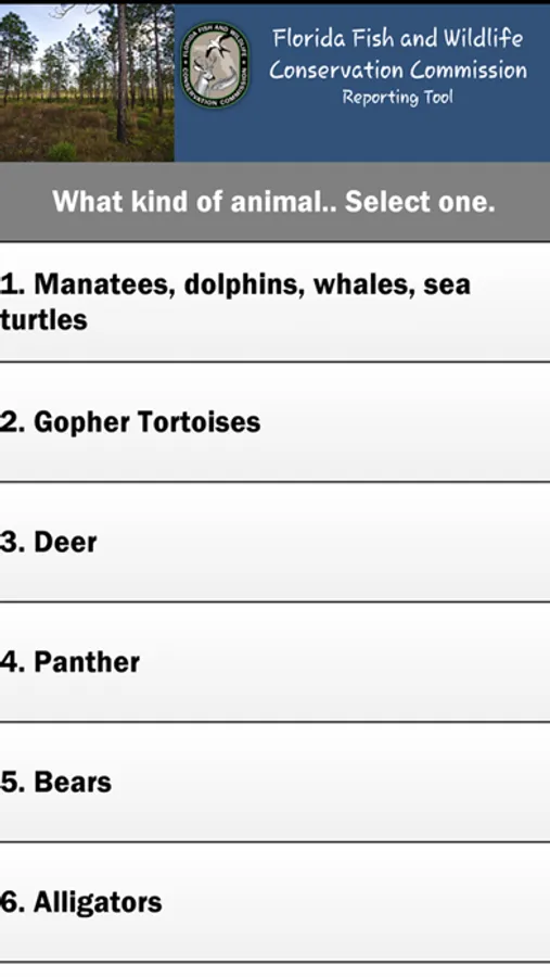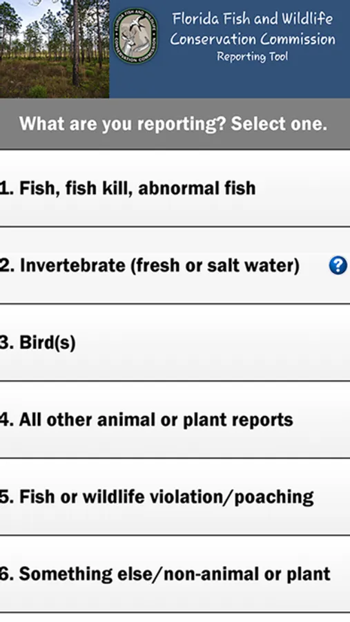 The Florida Fish & Wildlife Reporting mobile app lets you report fish and wildlife interests and concerns to the Florida Fish & Wildlife Conservation Commission. Reports include, fish kills, abnormal fish, plant and animal IDs, suspected invasive species, injured or dead wildlife, nuisance animals, wildlife health issues, fish & wildlife violations and other suspicious activity, pollution and spills, boats and signage, and personal safety concerns.
