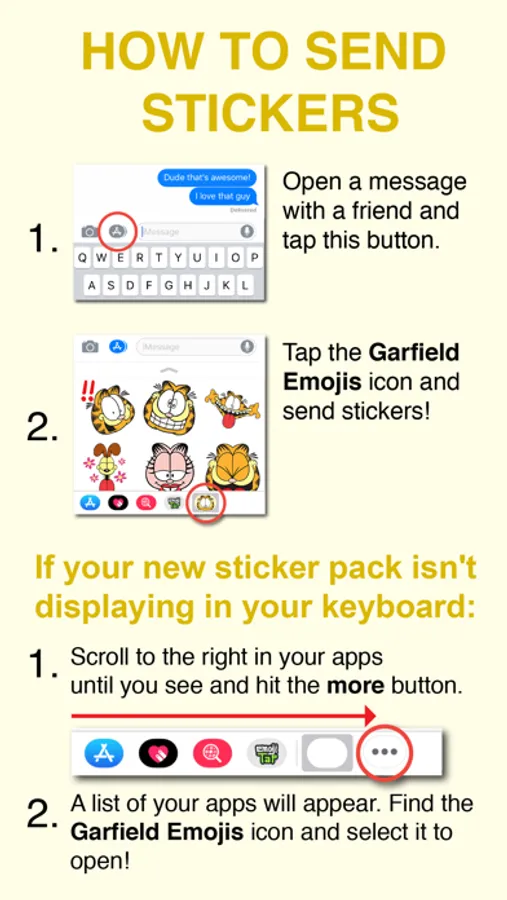 When just a facial expression says it all, send these Garfield emoji-style sticker reacts to your friends! Pack includes 24 static stickers.