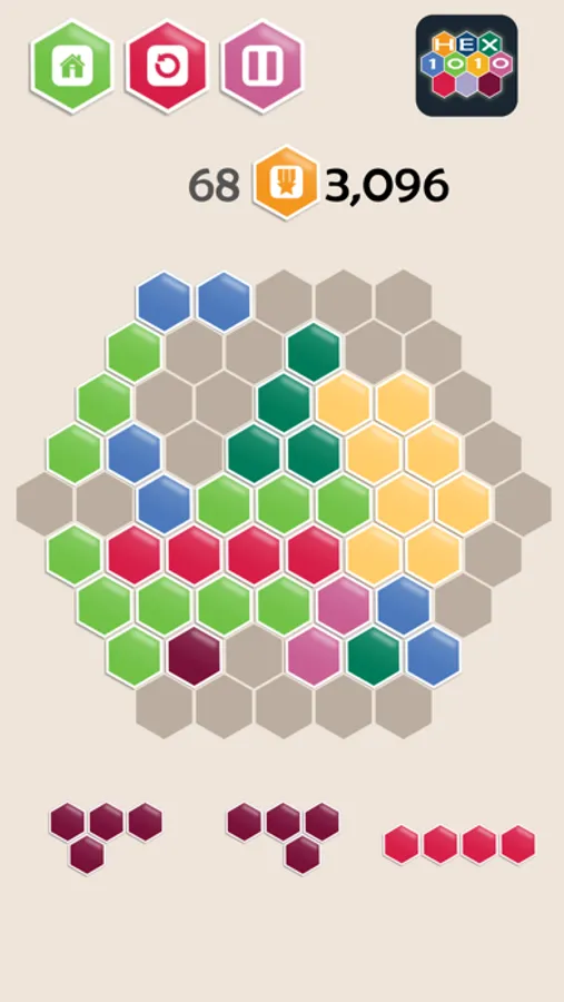 Hex 1010, a free puzzle game with simple rules.