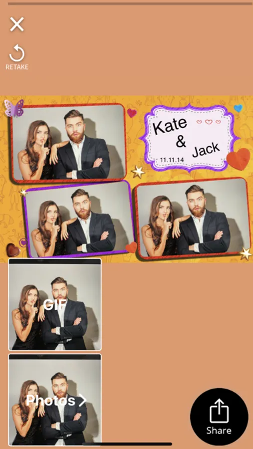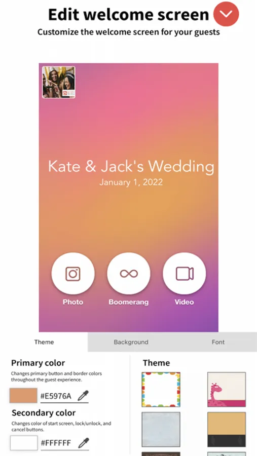 Fully customize the start screen with beautiful built-in themes, and allow your guests to share using e-mail, SMS, Airdrop, QR code, Instagram, and Twitter. If you have no internet, LumaBooth will queue all e-mail and SMS shares to be sent later once you have internet. After your event, get a list of everyone's e-mail and phone number who have shared photos during your event.