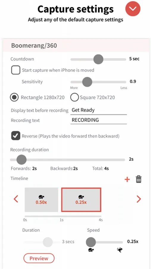Capture high quality videos that can be customized by adding an overlay, pre-roll and post-roll videos, and a backing soundtrack to fit your event. You can also create short videos called boomerangs where you can speed up or slow down sections of the recorded video. Using the high framerate cameras in recent iPads, you can shoot at 240fps perfect for slow-mo effects. LumaBooth also packs several features for 360 booths such as animated video overlays, image overlays, video stabilization, using ultra-wide camera lens, and starting a session by moving the iPad.