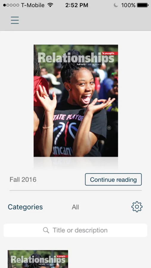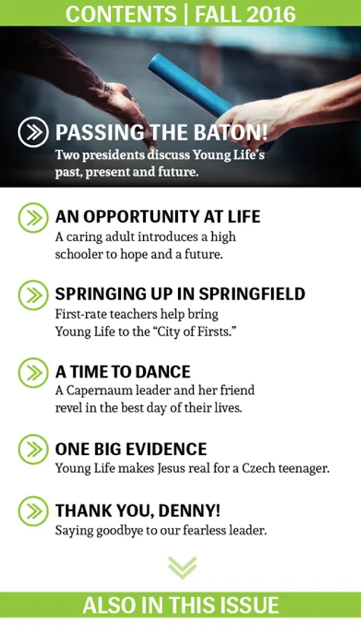 Relationship is a publication of Young Life, a mission devoted to introducing adolescents to Jesus Christ and helping them grow in their faith. Relationships magazine is published three times a year (spring, fall and winter) by Young Life.