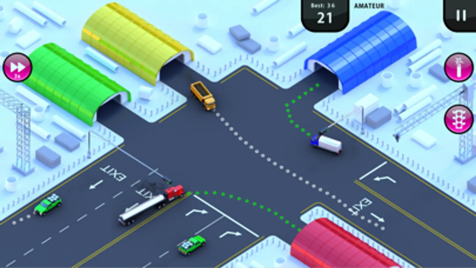 In this addictive drawing game you play as a traffic controller. You lead 4 different trucks to their corresponding garages. It's not that easy - you should draw an exit path for each of them too.