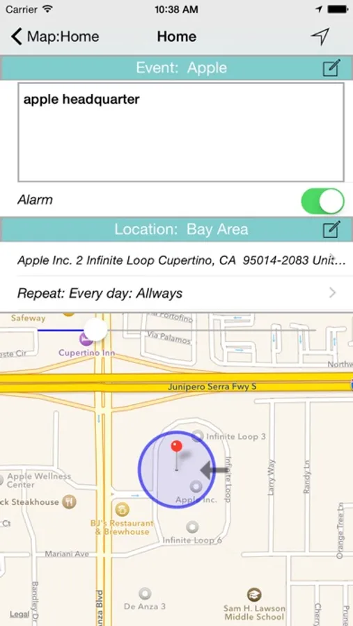 The alarm with memo will notice when you arrive at the location or departure from the location.