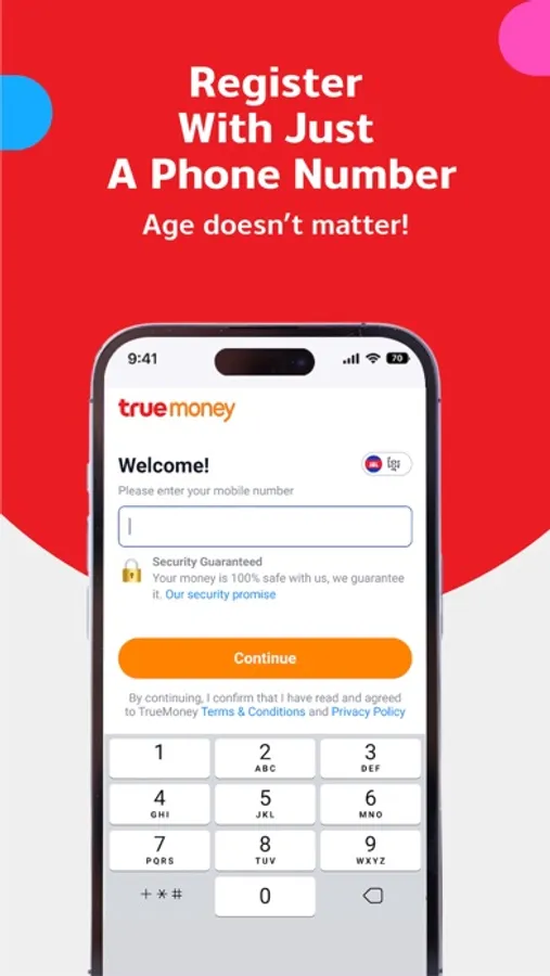 Easy registration - you just need a Cambodian phone number to register for a TrueMoney Wallet account. Enjoy a true digital lifestyle.