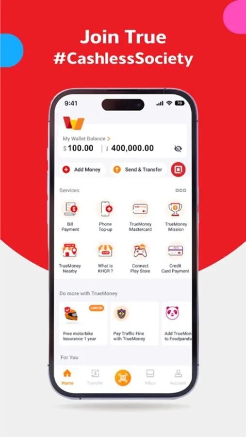 Multiple ways to add money - fund-in your wallet is very easy with your KHQR compatible with over 30+ Banks, 10,000 TrueMoney Agents, and TrueCode.