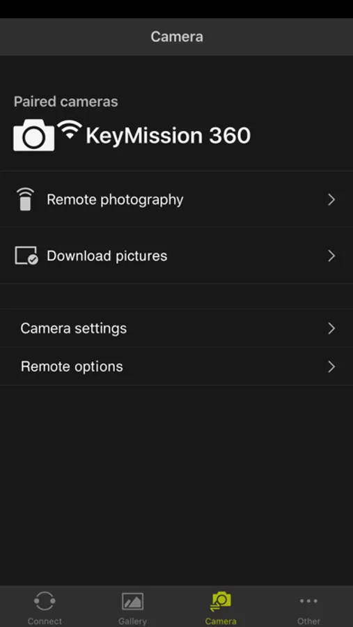 This app lets you connect wirelessly to a KeyMission 360 or KeyMission 170 to easily shoot/record, import, and change settings remotely. The app lets you edit images and movies as well.