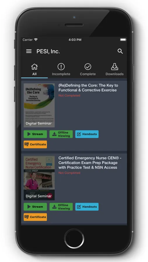 Customers can also view handout materials, perform evaluations and quizzes, and obtain certificates of completion without leaving the App.