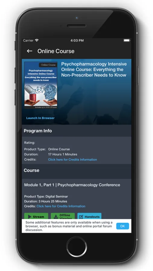 Attending a live webcast or viewing an on-demand seminar from your mobile device is as easy as tapping a link in your account. One click and the App will do the rest. The presentation will appear on your screen and audio will go through your headphones.