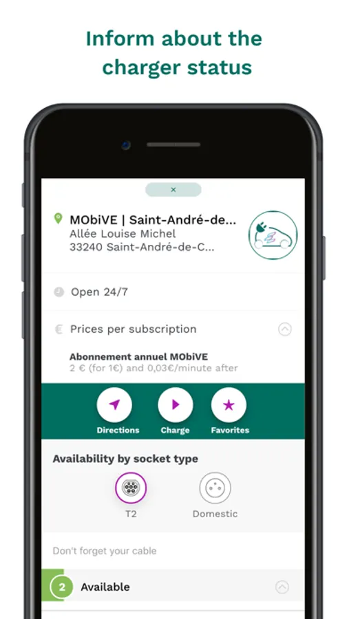 - Get real-time information (availability, charging speed, plug types, rates...)