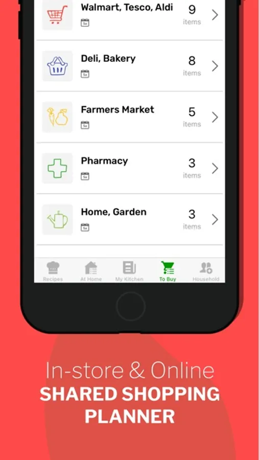Shop for groceries with confidence, knowing at all times what you have at home. Your category-sorted "To Buy" list is built in seconds with powerful product creation assistance and automatic item handling. Share the list with anyone or select products to be remembered as a favorite. A daily reminder will keep you from missing a trip to the store.
