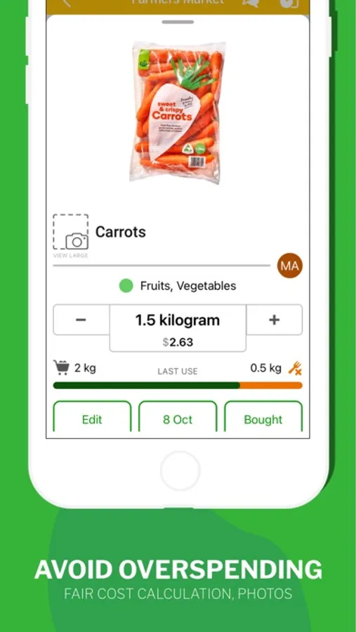 Every food that you cook or buy with CozZo shopping list can be easily tracked for spoilage. Your purchases are sent to the home inventory list with calculated 'Use By / Best By' dates and expiration alerts. Overbuying and overspending are prevented with "last use" info and item cost calculation.