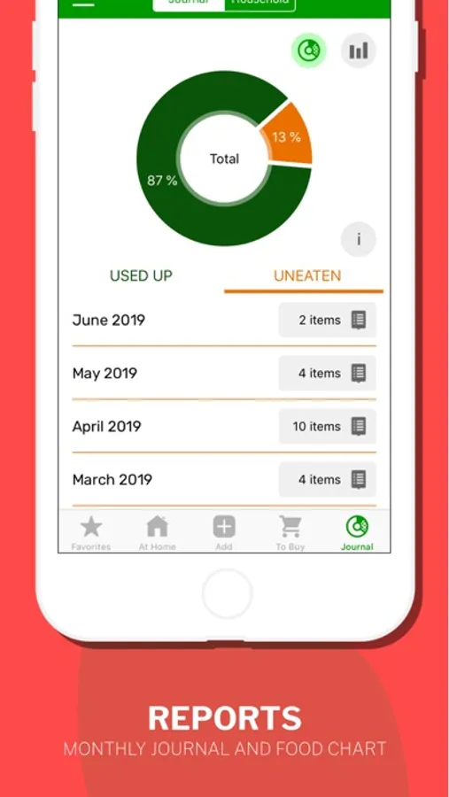 • "JOURNAL" reports and charts. Real-time statistics of % consumed vs. uneaten food and monthly lists of consumed and uneaten items.