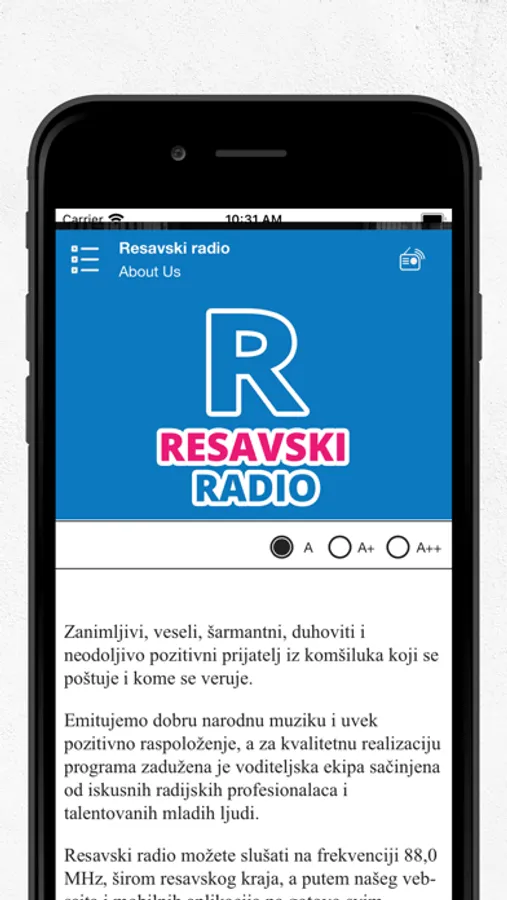 Resavski radio možete slušati na frekvenciji 88,0 MHz, širom resavskog kraja, a putem našeg veb-sajta i mobilnih aplikacija na gotovo svim kompjuterima, pametnim telefonima, tabletima i drugim uređajima, bilo gde u svetu. Dovoljno je da se povežete na internet, pritisnete "Play" i zabava može da počne!