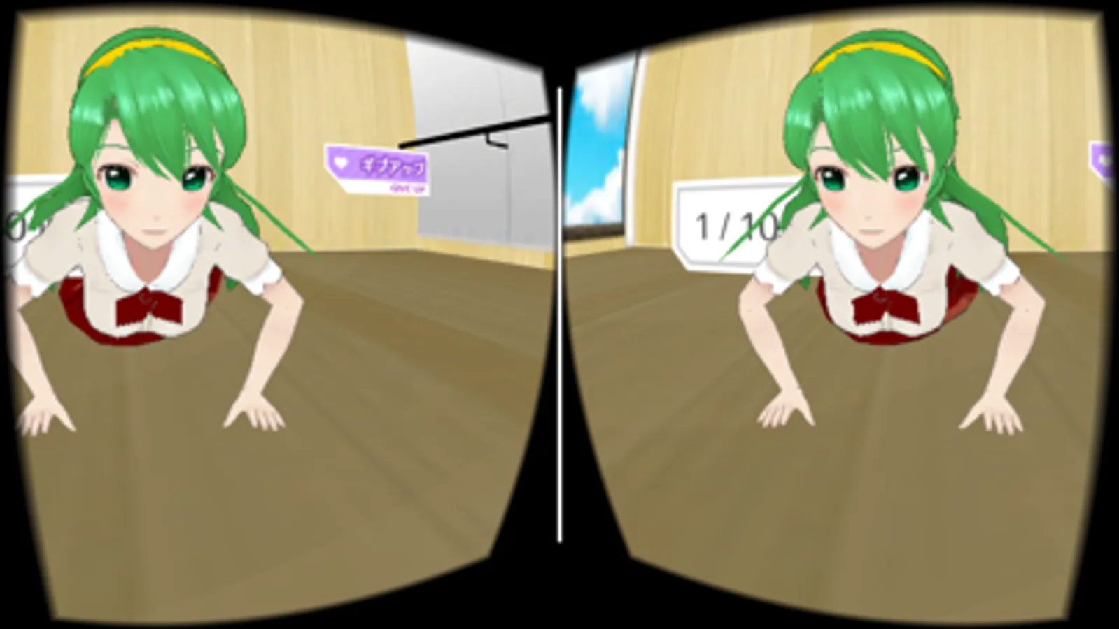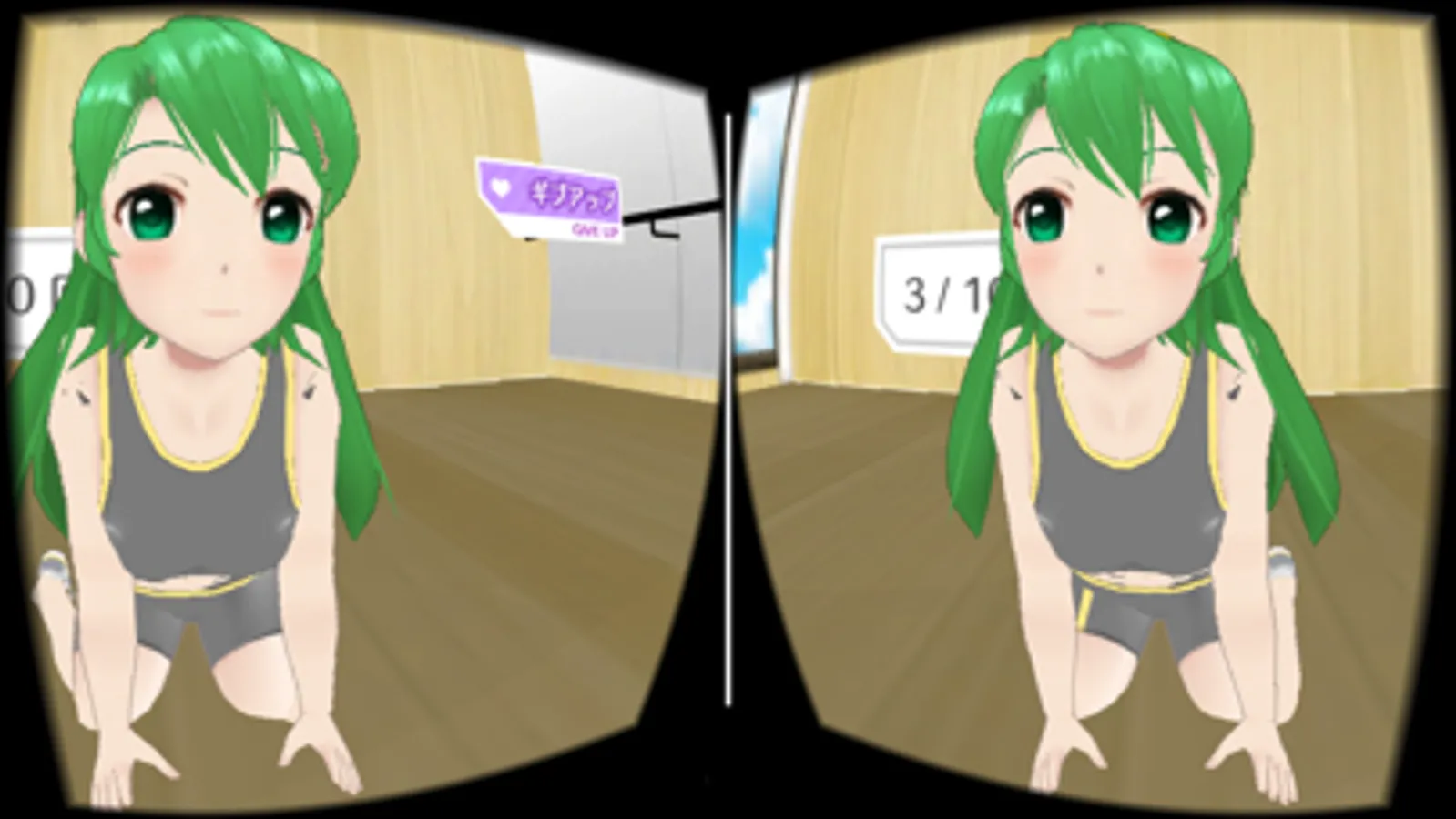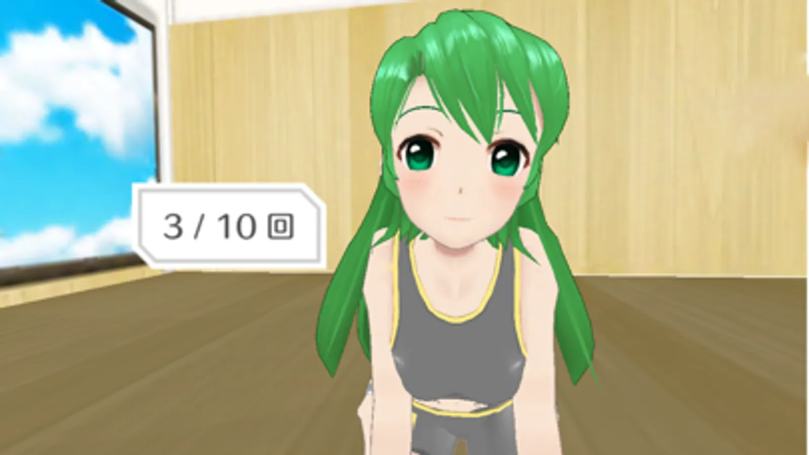 VRゴーグルを装着することにより、まるでショウ子がそこにいるような体験ができます! 好みのコスチュームに着せ替えて、4種のトレーニングから好きなメニューを選択。二人だけのVR空間で、向かい合って仲良く腹筋運動や腕立て伏せを楽しみましょう! さあ、VRトレーニングで体を鍛えてマッチョな体型に!