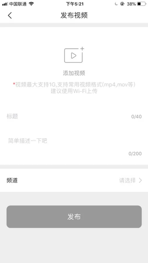 发布视频:随时随地发布视频内容,最大支持1G本地视频上传