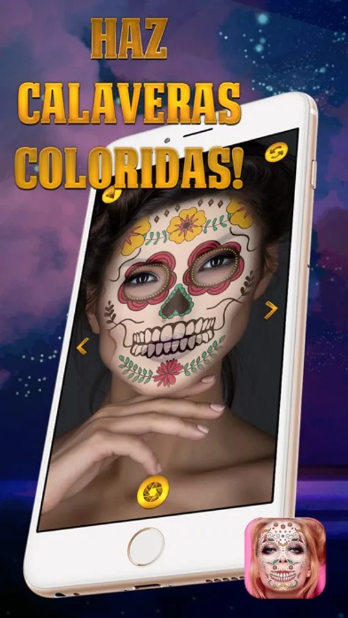 El tiempo para celebraciones y días festivos por fin ha llegado y nosotros tenemos algo bastante bien para usted! Día de Muertos Pintura de Cara es una aplicación gratuita que le proporciona un poco de diversión para colorear. Cree obras artísticas en sus caras y celebre esta famosa tradición mexicana de los calaveras! Obtenga esta aplicación de forma gratuita y sea creativo!