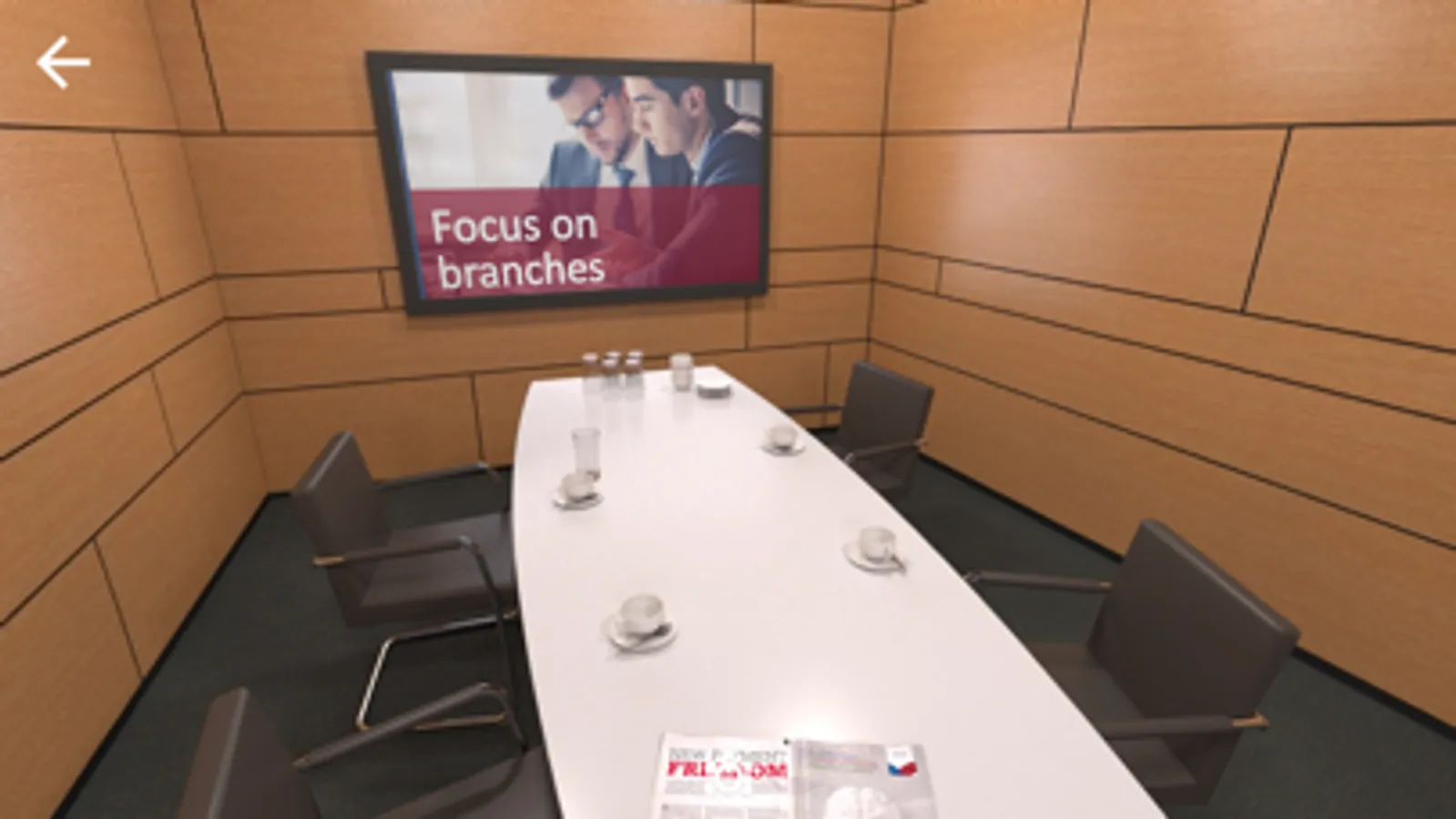 This application takes you on a virtual tour through the bank branch of the future. Within the virtual branch you can explore optimization potentials in terms of efficient operations.