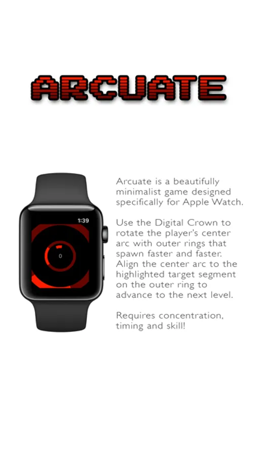 Arcuate is a beautifully minimalist game designed specifically for Apple Watch, iPhone and iPad.