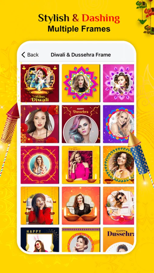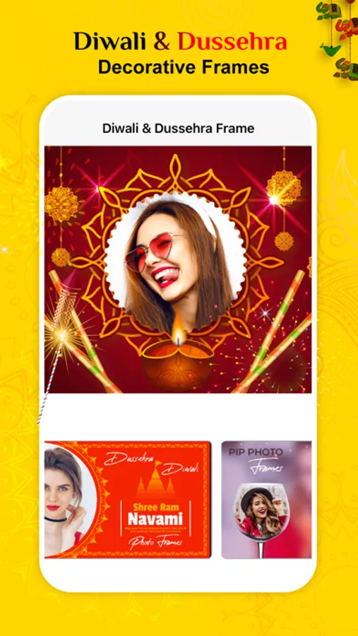 Diwali & Dussehra Photo Frames includes frame like wishes messages, wishes images and pictures. This app lets you make a photo frame with your photo in it and with Diwali Wishes. So make as many photo frames you like and send it to all your friends and family members. With this app you can share your beautiful creations and greetings in a different, beautiful and stylish way.